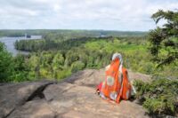 Naším dalším cílem po Ottawě je Algonquin – chráněné území spravované provincií Ontario. Deštivý přesun po silnici č. 60 se vleče tak, že div nezapomínáme vybírat zatáčky. Když dojedeme k východní bráně parku, zbývá už jen hodina do zavíračky. Rádi bychom podnikli vícedenní vandr a podle strážkyně parku tomu nic nebrání – stačí zaplatit poplatek a nahlásit trasu včetně plánovaných nocovišť. Vyznačených stezek, po nichž se lze potulovat několik dnů, je tu několik. Území větší než Plzeňský kraj pokryté lesy a jezery je bezesporu lákavé – a to nejen pro chození, ale i kajakování, neboť vodní plochy jsou mezi sebou povětšinou propojené. Prozatím kupujeme mapu s tím, že si to ještě promyslíme, nejdřív chceme podniknout několik kratších výletů. Ubytování s díky odmítáme, neboť cena standardního kempu začíná na 40 dolarech, a vracíme se zpátky před hranici parku, kde vzápětí nacházíme u jezera přijatelné místo na spaní. Libujeme si, jaký je tu klid, jen kolem nás občas procouvá obrovský pick-up. Po chvíli ale přilétá celá armáda hmyzu, zejména komárů, a taky muchniček rodu Simulium, anglicky nazývaných black flies a proslulých svým agresivním kousáním. Bez vystupování, a tedy dosti krkolomně, přebalujeme věci v autě na spaní a lepíme izolačkou na okna záclonky. Uf!