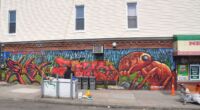 Další den jdeme pro změnu prozkoumávat východní stranu ostrova, a to East Village – zčásti hip(sterskou) a zčásti autenticky alternativní čtvrť, kde je taky každá druhá kavárna „vegan“ a jeden podnik nabízí i svačinu s „paleo-friendly“ parametry. Naše první zastávka u squatu, či spíš alternativního kulturního centra ABC NO RIO, je ale neúspěšná: tento týden tu nejsou žádné akce. Alespoň vidíme budovu zvenku a dozvídáme se, že centrum funguje už od roku 1980, přičemž v roce 2006 se umělcům, aktivistkám a squatterům podařilo od města za dolar dům oficiálně získat. Současná budova se rozpadá. Pro její zbourání a postavení nové, nízkoenergetické, probíhá sbírka s cílovou částkou 5 milionů dolarů.